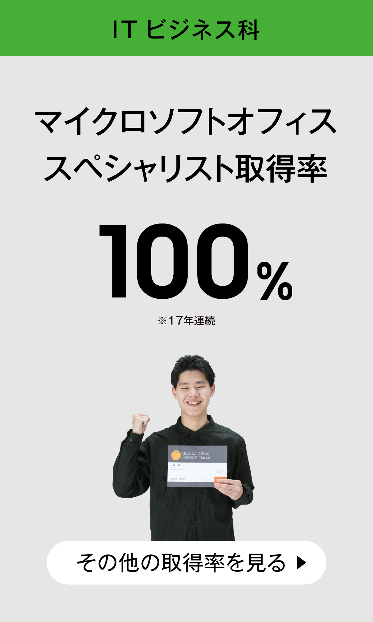 希望職種に応じた学科別カリキュラムで、専門的な知識やスキルを学ぶことができ、即戦力となります。