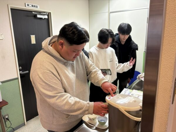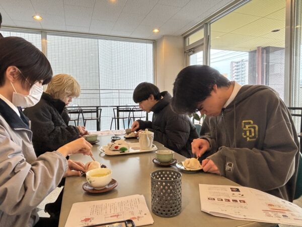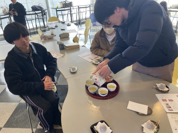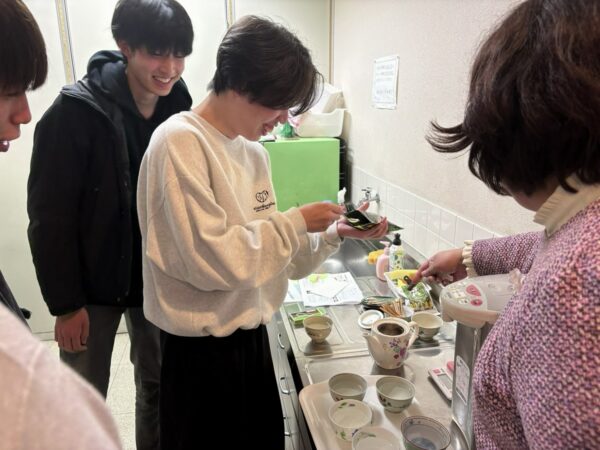 オフィスビジネス科、ITビジネス科の1・2年生が男子学生も含めて全員でお茶出しに挑戦しました。