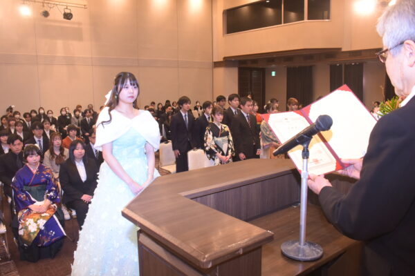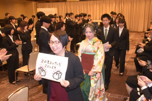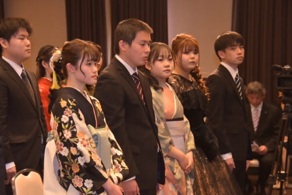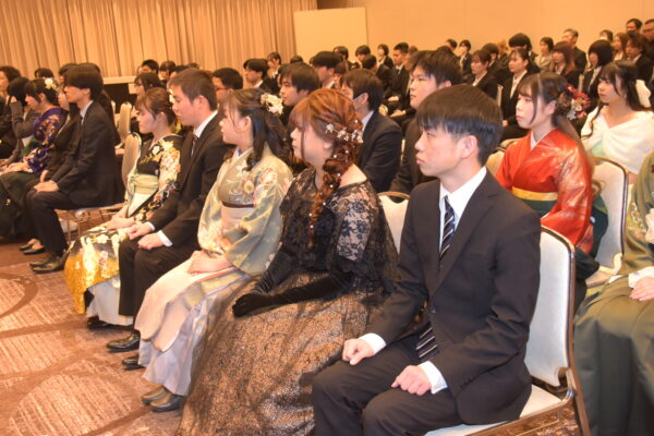 スーツや振り袖、袴にドレスなど思い思いの衣装が式典を彩ります🎨